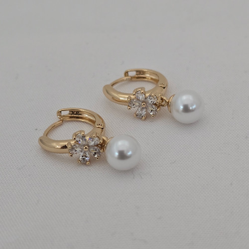 گوشواره آویز مرواریدی با نگین گل