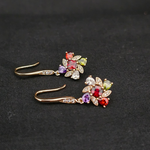 گوشواره آویز گل جواهری ژوپینگ