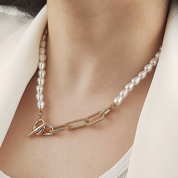 گردنبند مرواریدی با قفلT