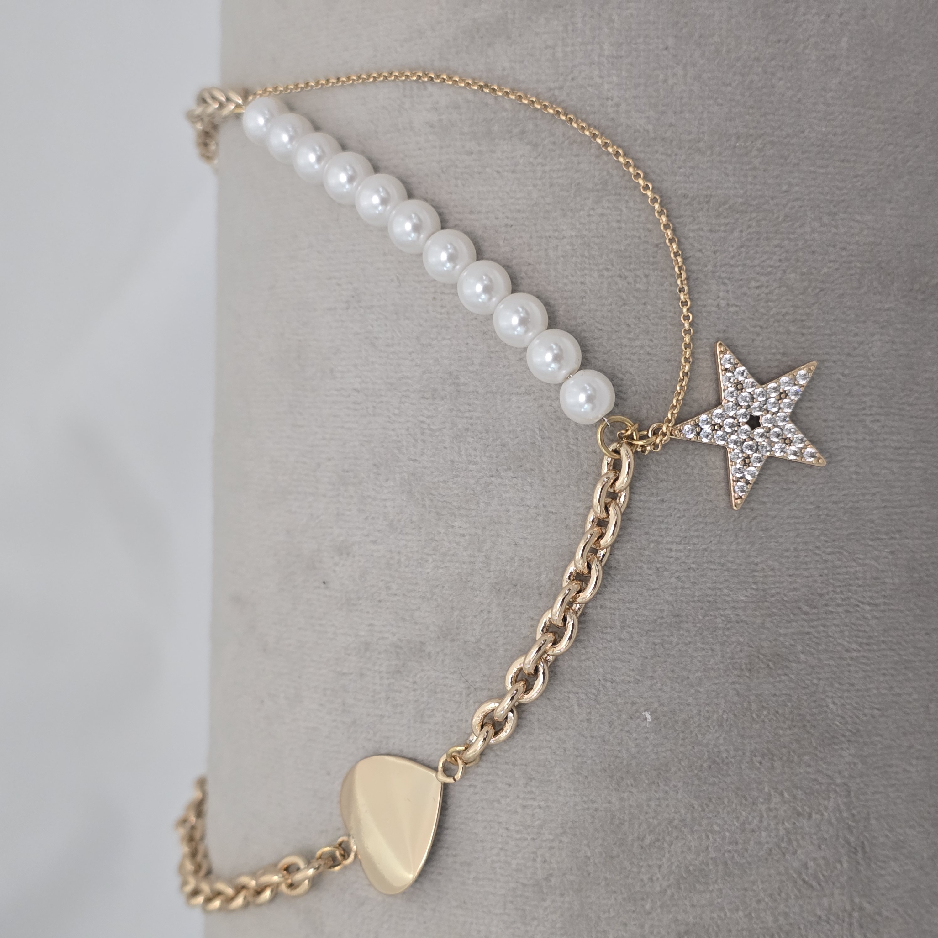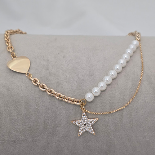 گردنبند مرواریدی قلب و زنجیر